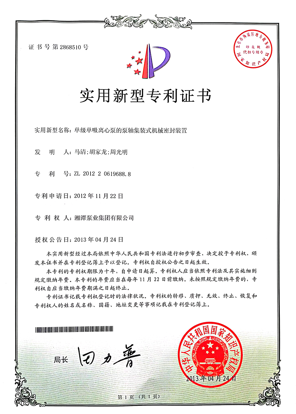 單級單吸離心泵的泵軸集裝式機械密封裝置