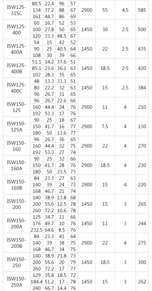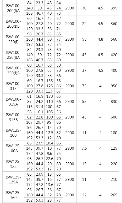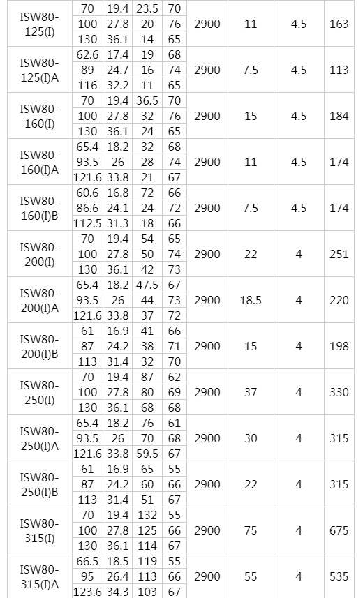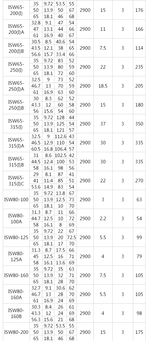 該泵采用國內(nèi)先進水力模型優(yōu)化設(shè)計而成。同時根據(jù)使用溫度、介質(zhì)等不同在ISW型基礎(chǔ)上派生出熱水泵、高溫泵、化工泵、油泵等,是目前國家標(biāo)準定型推廣產(chǎn)品。